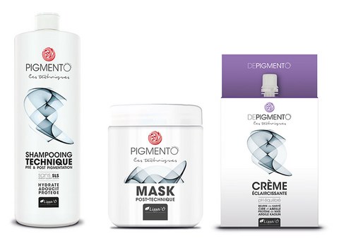 Pigmento agit de façon très différente par rapport à une coloration classique par oxydation. Le principe du traitement exploite les propriétés mécaniques de surface du cheveu. Il s’agit d’une couverture esthétique composée de fluides nuancés qui vont déterminer une nouvelle pigmentation aux cheveux.